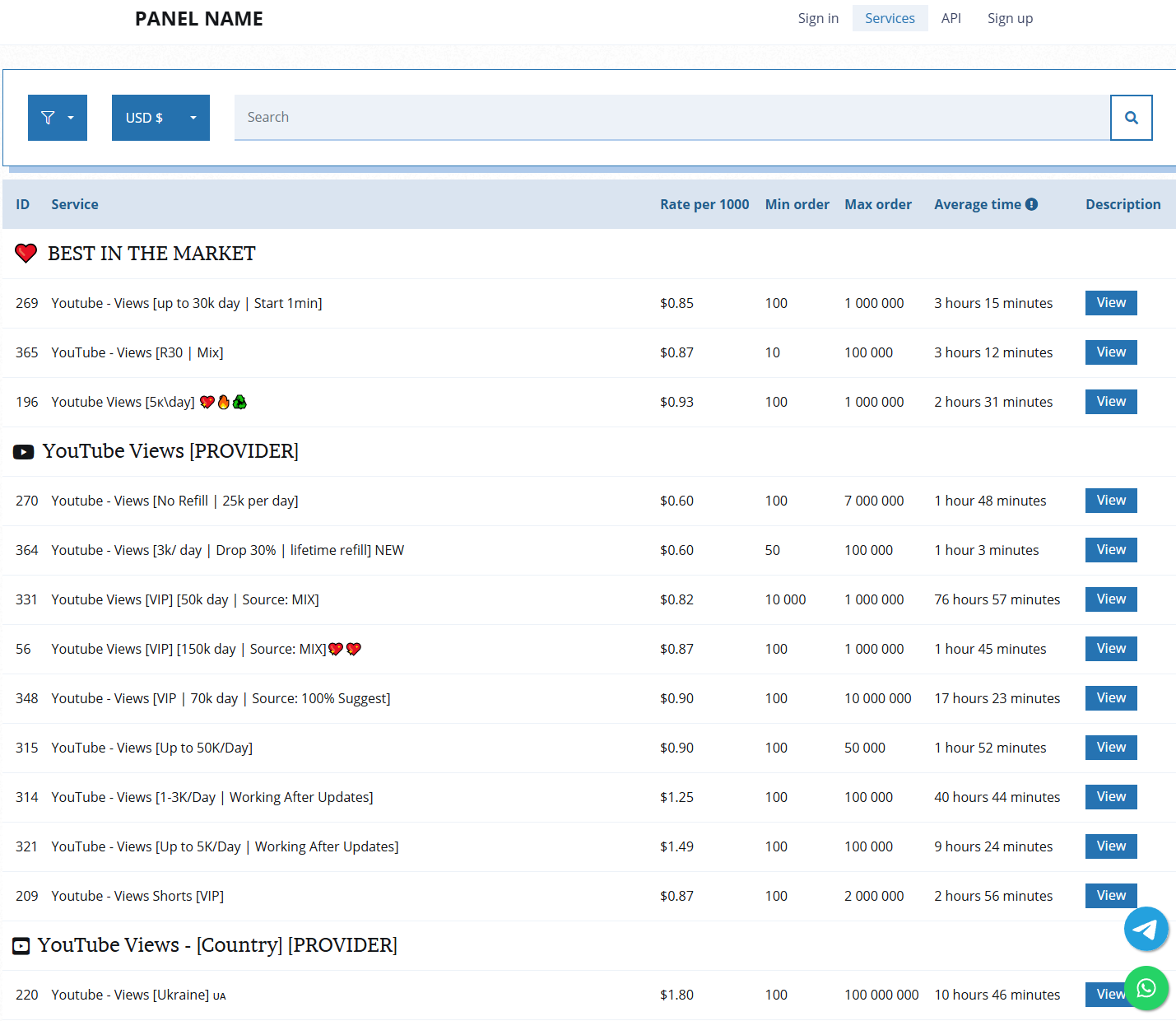 Fast Delivery: Some services start as quickly as within 1 minute and can deliver up to 30,000 YouTube views per day.