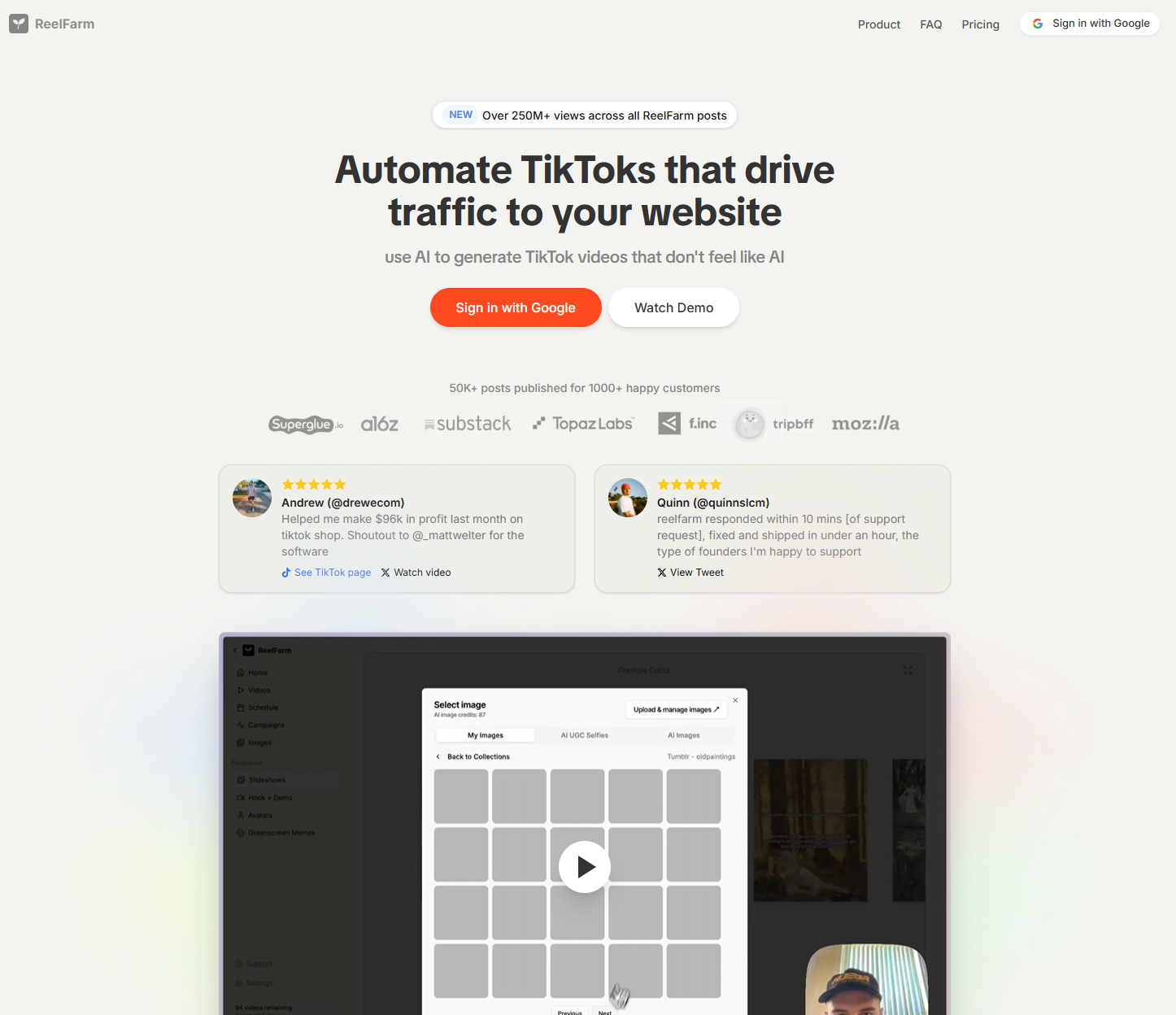 Automated videos that drive traffic to your website, app, or business. Generate AI TikToks and create your own gen z marketing team.